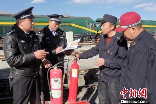 圖為拉薩鐵路公安處民警對站區(qū)重點(diǎn)部位開展消防安全大檢查。 湯成俊 攝