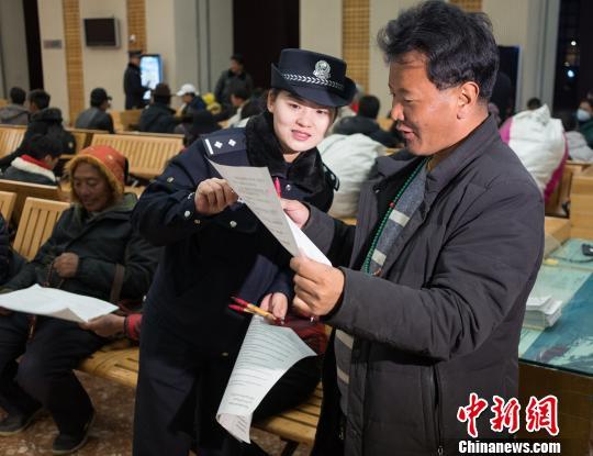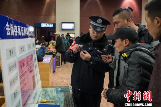 拉薩鐵路公安處民警為旅客講解如何識(shí)別假火車票。 何蓬磊 攝