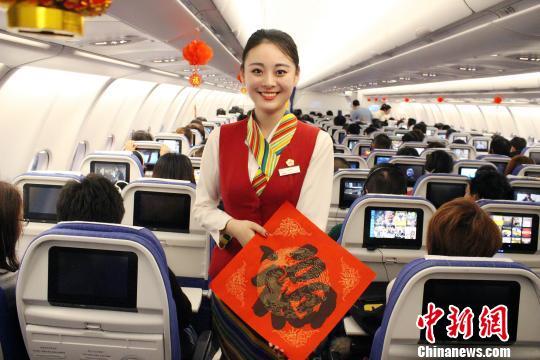乘務員為旅客送上了紅棗茶和“?!弊?,在三萬米高空溫暖旅客回家路,其樂融融的客艙內(nèi)像是一個溫暖的大家庭!