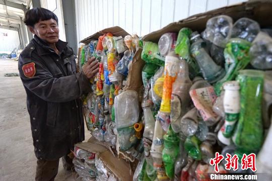 圖為改則縣從草原上收集而來(lái)的各類塑料瓶等白色垃圾。曹枝清 攝