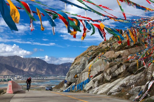在西藏,從山到水,從建筑到自然,只要有風到達的地方,就會有經(jīng)幡飄動的身影。藍天與白云,火焰與碧水,飄蕩在黃色大地上,伴隨著流云,講述著生活在這片雪域高原的百姓們對當下的熱愛,對未來的企盼。而旅行者們,也總喜歡在這些飛揚的經(jīng)幡邊駐足,合掌祈福,讓五彩經(jīng)幡傳遞心中美好的祝福與真摯的希望。