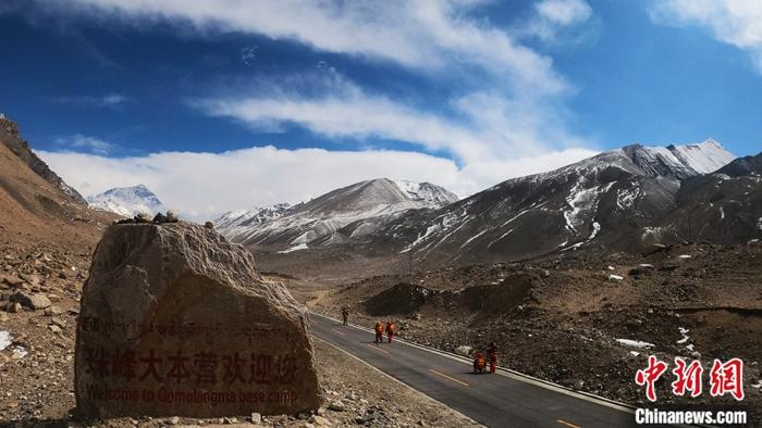 圖為4月3日,在西藏日喀則市定日縣,國(guó)測(cè)一大隊(duì)精密水準(zhǔn)測(cè)量工作即將推進(jìn)至珠穆朗瑪國(guó)家公園。 中新社發(fā) 魏軍輝 攝