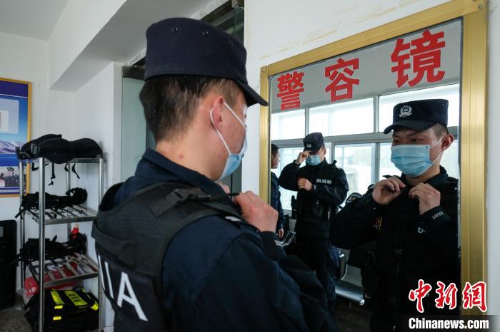 普瑪江塘邊境派出所民警在巡邏前整理著裝。何蓬磊 攝