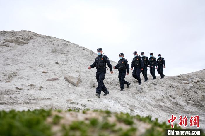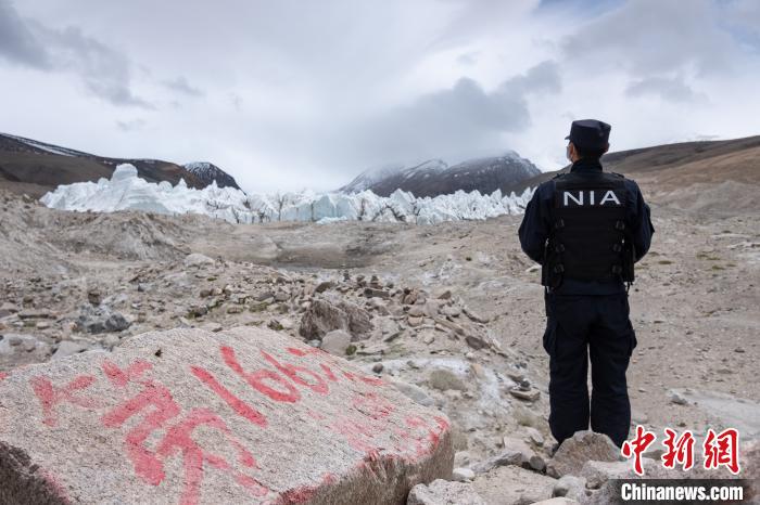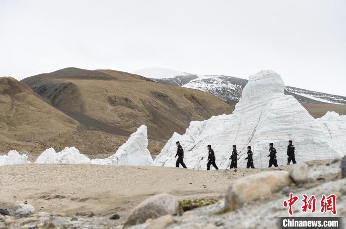 普瑪江塘邊境派出所民警們通過步巡對邊境一線(崗布冰川)進(jìn)行了全面細(xì)致的巡邏檢查。何蓬磊 攝