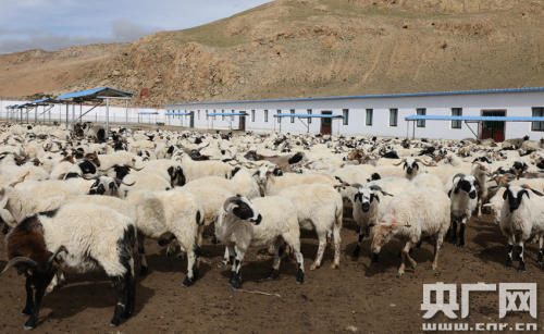 合作社內的羊群(中央廣播電視總臺央廣記者 普布次仁 攝)