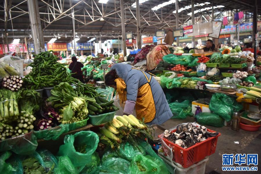 拉薩市藥王山農(nóng)貿(mào)市場(chǎng)蔬菜區(qū),商戶(hù)在整理菜品(2019年12月29日攝)。 新華社記者 周錦帥 攝