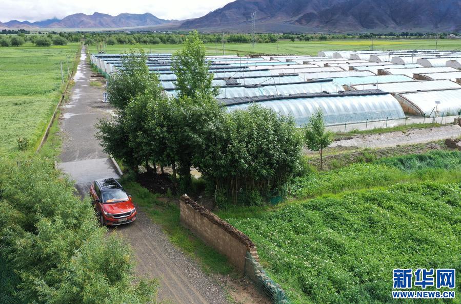 位于西藏日喀則市白朗縣的蔬菜生產(chǎn)基地一角(2020年8月3日無(wú)人機(jī)拍攝)。新華社記者 李賀 攝