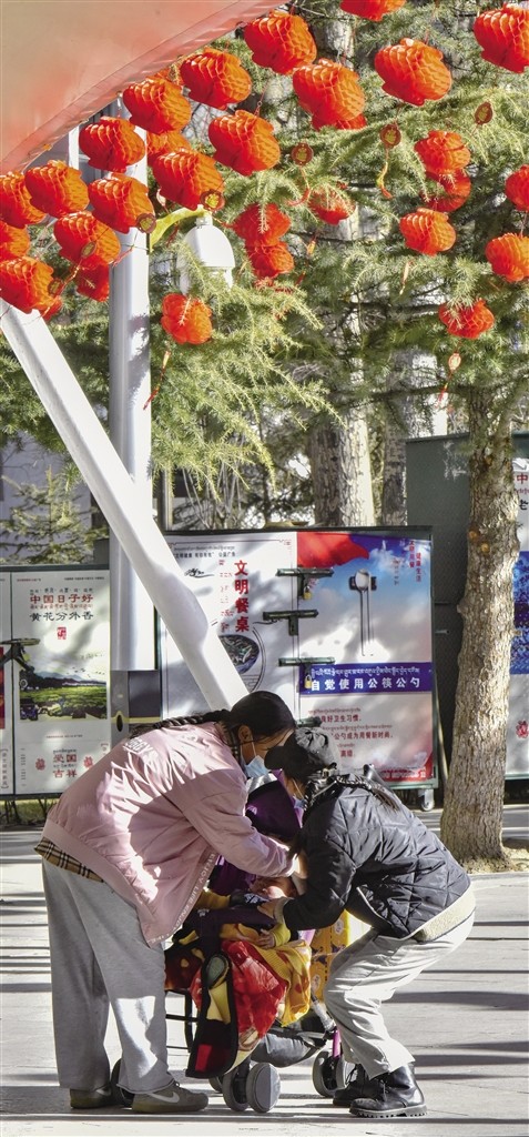 “日喀則新年已經(jīng)開(kāi)始,但我因?yàn)楣ぷ髟驔](méi)能回去。今天過(guò)來(lái)公園散步,看到掛著的紅燈籠,一下子就有年味了,感覺(jué)公園都變得更漂亮了?!眮?lái)自日喀則市江孜縣的白瑪央金說(shuō)。