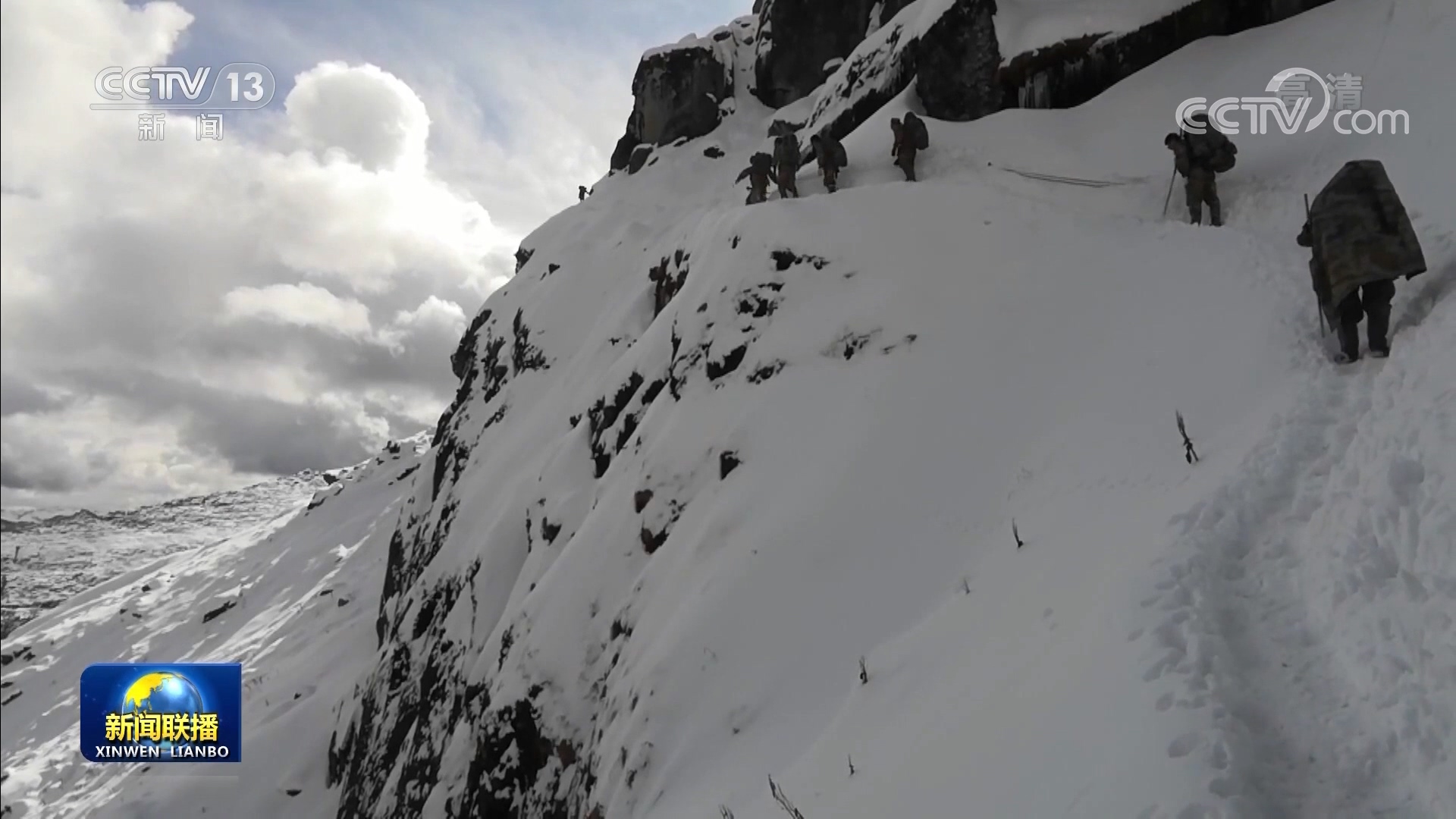 隨著海拔的升高,官兵們來(lái)到了巡邏路上最危險(xiǎn)的雪山虎口崖路段。