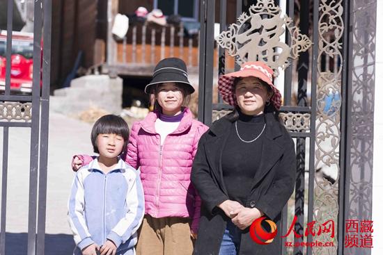 米古麗和孩子們?cè)诩议T口。人民網(wǎng)記者 徐馭堯攝