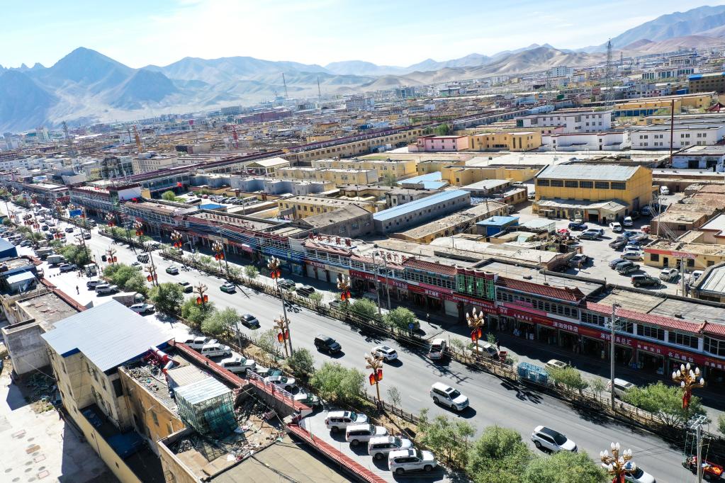 這是阿里噶爾縣獅泉河鎮(zhèn)一景。(2020年6月29日 新華社記者 田金文 攝 無人機照片)