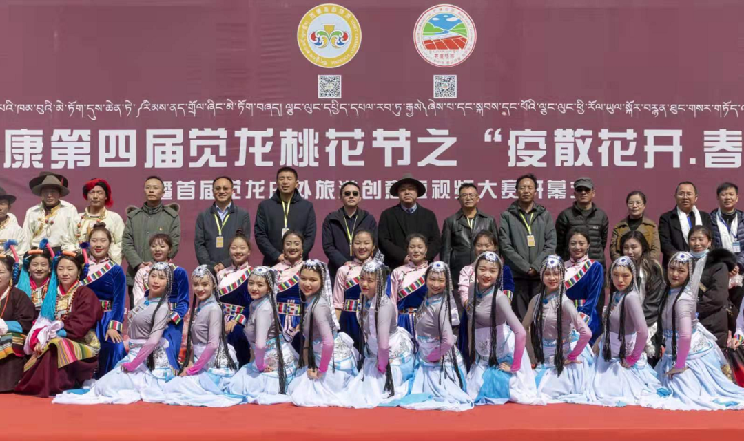 4月3日活動正式開幕,開幕式上,昌都市人大常委會主任、黨組書記,芒康縣委書記齊應海宣布活動開幕,并為納西民族鄉(xiāng)覺龍村頒授了《全國鄉(xiāng)村旅游重點村》獎牌。昌都市旅游發(fā)展局副局長蔡慶,芒康縣委常委、常務副縣長杜晨光出席開幕式并致辭。麗江藝術團和芒康藝術團帶來的歌舞《吉祥謠》《福滿昌都》《崗拉梅朵》等精彩紛呈的表演為在場觀眾帶來了一場歌舞盛宴。開幕式后,游客們循著山谷中遍野的桃花,漫步山野田間,記錄著每一個美麗的瞬間。出了覺龍溝,大家在扎古西大峽谷參觀了文成公主廟和崗達寺,傍晚在云曲莊園大家圍著篝火跳起了歡快的舞蹈。