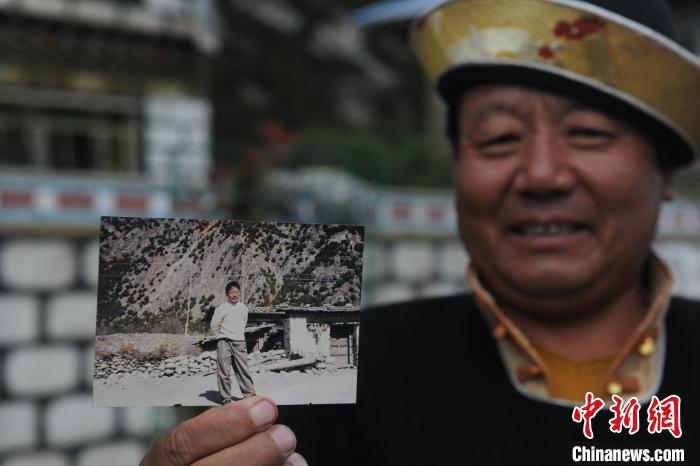 圖為林芝市工布江達(dá)縣巴河鎮(zhèn)雪卡村村民拿出舊照對比安居工程項目實施后的住房變化。農(nóng)行西藏分行供圖 農(nóng)行西藏分行供圖