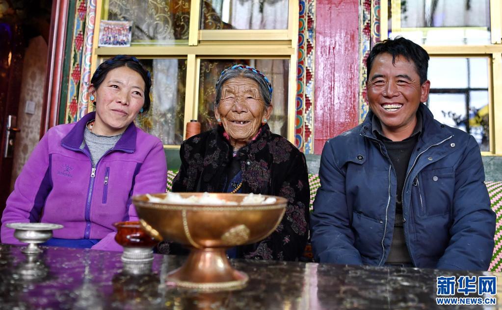 邊巴倉(cāng)決和孫子、孫媳在一起(3月19日攝)。新華社記者 張汝鋒 攝