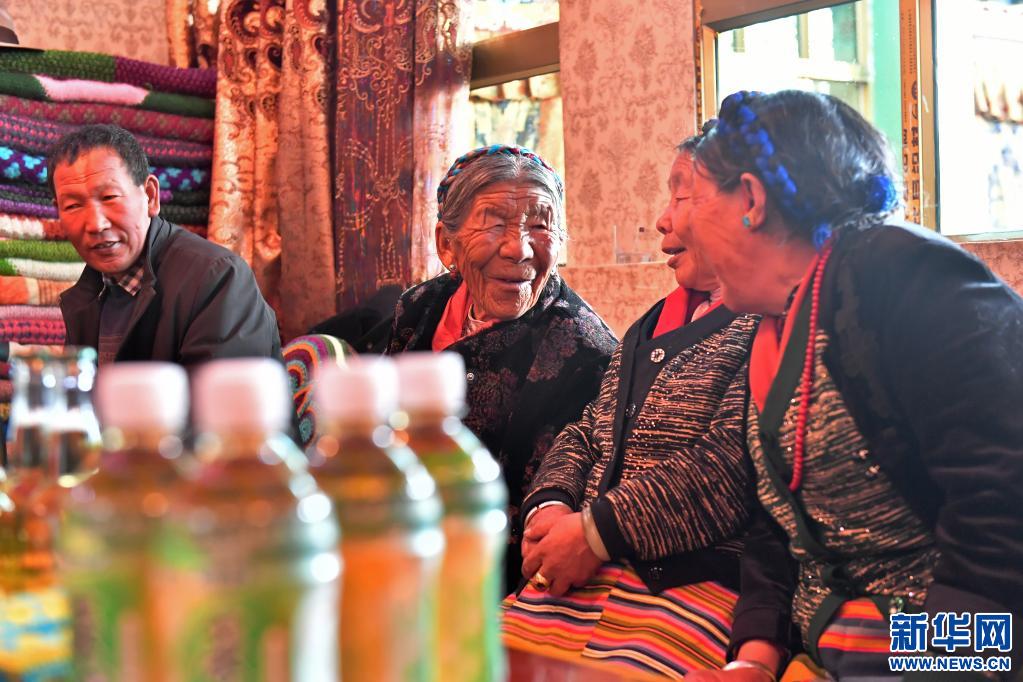 邊巴倉(cāng)決(左二)和鄰居在家里拉家常(3月19日攝)。新華社記者 孫瑞博 攝