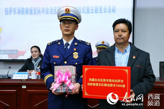 雙方還簽訂了共建協(xié)議,就圖書流動(dòng)站建設(shè)、消防志愿服務(wù)隊(duì)建設(shè)和數(shù)字化電子圖書服務(wù)等達(dá)成一致。旦增卓瑪代表西藏自治區(qū)圖書館向拉薩市消防救援支隊(duì)贈(zèng)送書籍1000冊(cè)。