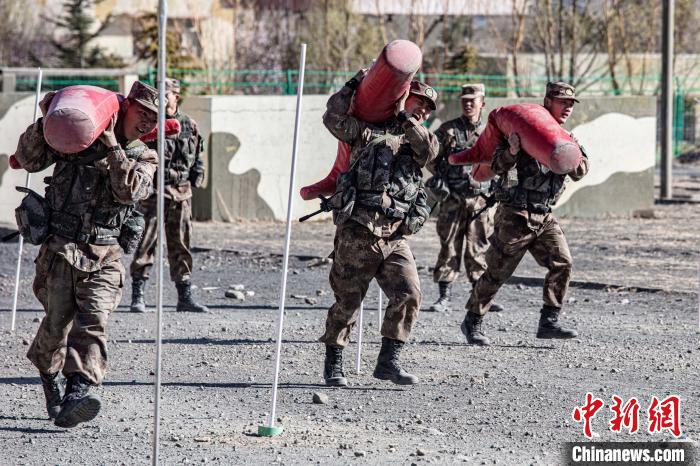 圖為西藏軍區(qū)某旅新兵扛著模擬“傷員”進(jìn)行戰(zhàn)場(chǎng)搬運(yùn)考核。西藏軍區(qū)某旅 攝
