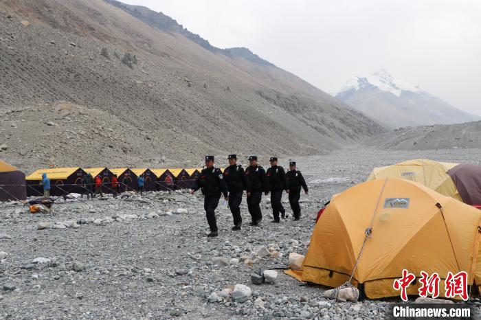 為了確保登山隊(duì)安全和登山活動(dòng)順利開展,該派出所沿途與珠峰攀登活動(dòng)先遣隊(duì)積極保持聯(lián)系。在確保有效管控邊境地區(qū)的同時(shí),民警前往珠峰大本營(yíng)開展常規(guī)巡邏任務(wù),及時(shí)了解登山隊(duì)的情況和需求,并與登山隊(duì)積極溝通協(xié)調(diào),協(xié)助登山隊(duì)攀登珠峰,保障登山活動(dòng)能夠安全、有序、順利進(jìn)行。