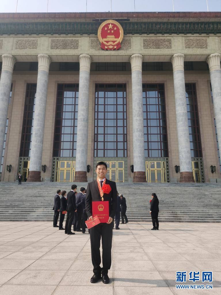 陳洪順榮獲全國(guó)脫貧攻堅(jiān)先進(jìn)個(gè)人稱(chēng)號(hào)后,在北京人民大會(huì)堂前留影(2月25日攝)。新華社發(fā)