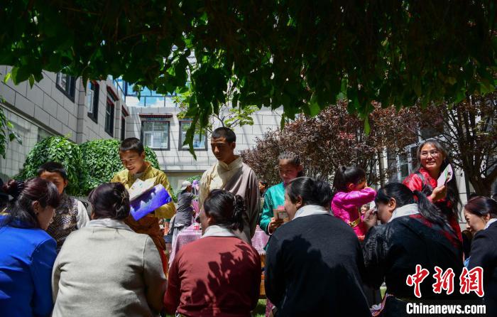 圖為兒童福利院的孩子們正在認領(lǐng)自己的“媽媽”茶杯。貢嘎來松 攝