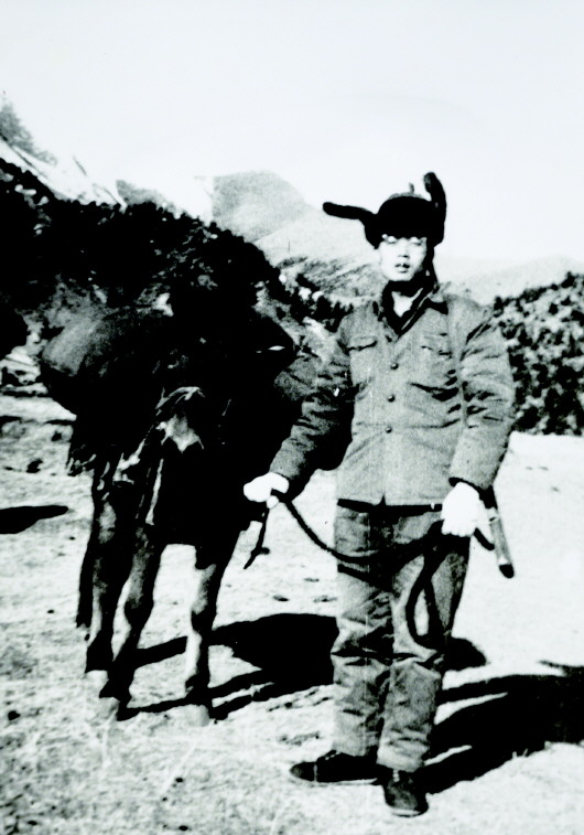 1981年春季,李純民在西藏昌都類烏齊縣下鄉(xiāng)工作途中(翻拍資料圖)。