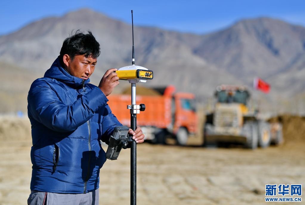 日喀則市桑珠孜區(qū)那塘村,測繪人員在高標(biāo)準(zhǔn)農(nóng)田項目施工現(xiàn)場進(jìn)行測量(2020年3月1日) 新華社記者張汝鋒 攝