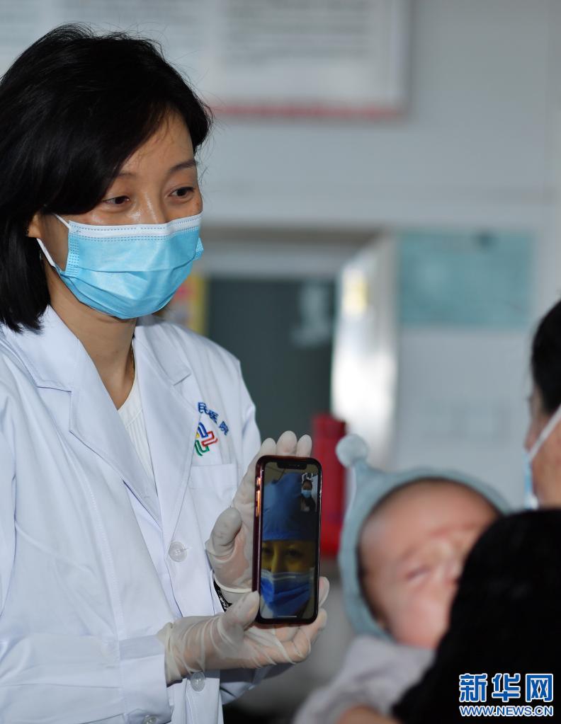 6月1日,在拉薩市人民醫(yī)院,來(lái)自北京的兒科專家(左)幫助一名家長(zhǎng)與在北京的兒科專家視頻連線。新華社記者 覺果 攝