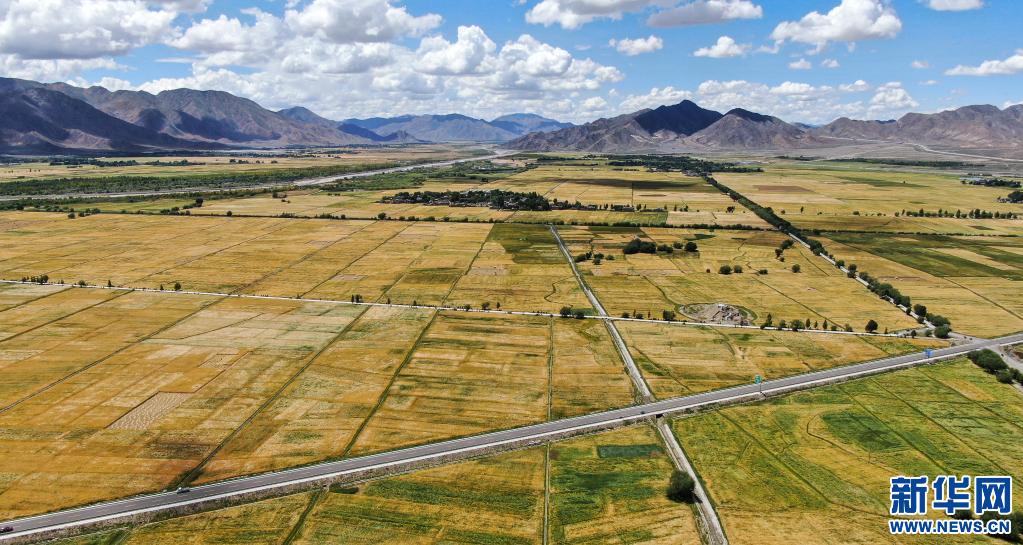 俯瞰西藏日喀則市白朗縣的農(nóng)田(2019年8月31日攝,無(wú)人機(jī)照片)。新華社記者 晉美多吉 攝