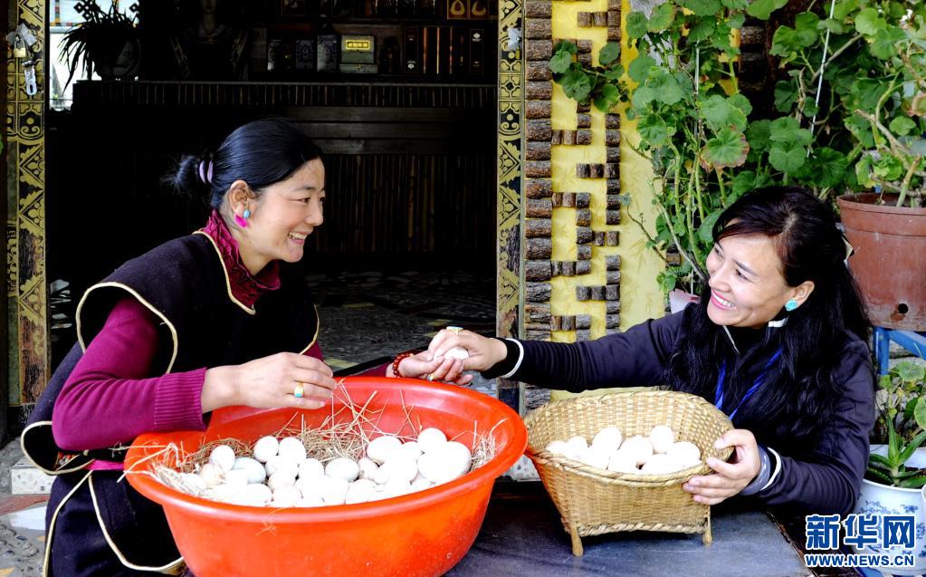 西藏林芝市魯朗鎮(zhèn)村民整理收集來(lái)的藏雞蛋(2016年4月6日攝)。新華社記者 張汝鋒 攝
