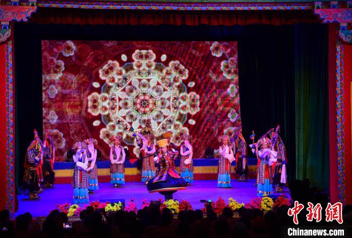圖為拉薩市城關區(qū)娘熱民間藝術團帶來的歌舞《拉薩囊瑪》 貢嘎來松 攝