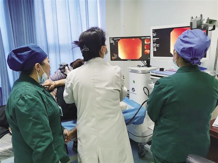 圖為內(nèi)鏡醫(yī)師體驗(yàn)在AI輔助下胃鏡檢查。西藏自治區(qū)人民醫(yī)院供圖
