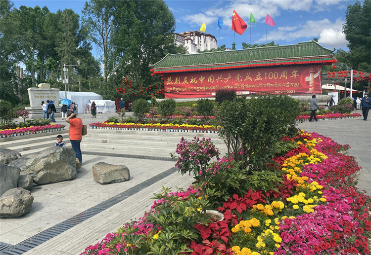 七一”前夕,走在拉薩街頭,慶祝建黨100周年的主題標(biāo)識(shí)隨處可見(jiàn),布達(dá)拉宮廣場(chǎng)裝點(diǎn)一新,宗角祿康公園花團(tuán)錦簇,處處洋溢著喜迎建黨百年的濃烈氛圍。為熱烈慶祝中國(guó)共產(chǎn)黨成立100周年,全市主次干道、門(mén)戶立交、公園、廣場(chǎng)等地大型主題雕塑、立體花雕、地面擺花為主要表現(xiàn)形式,營(yíng)造建黨百年的濃烈氛圍,美麗拉薩煥然一新,慶祝百年華誕。