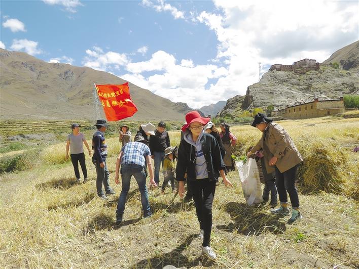 圖為西藏自治區(qū)日喀則市達(dá)那鄉(xiāng)開展黨員助農(nóng)秋收志愿服務(wù)活動(dòng)。