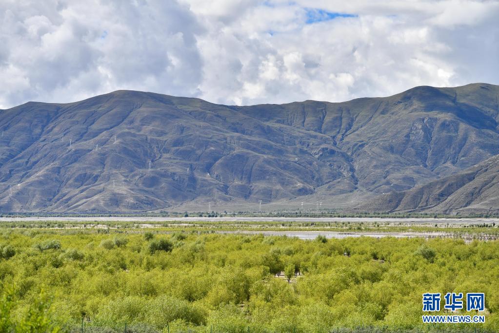 雅魯藏布江山南段沙丘上的人工林(7月20日攝,無人機照片)。新華社記者 晉美多吉 攝