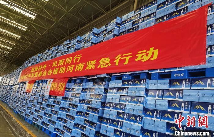 圖為為河南募捐的抗汛救災(zāi)物資 普珍 攝