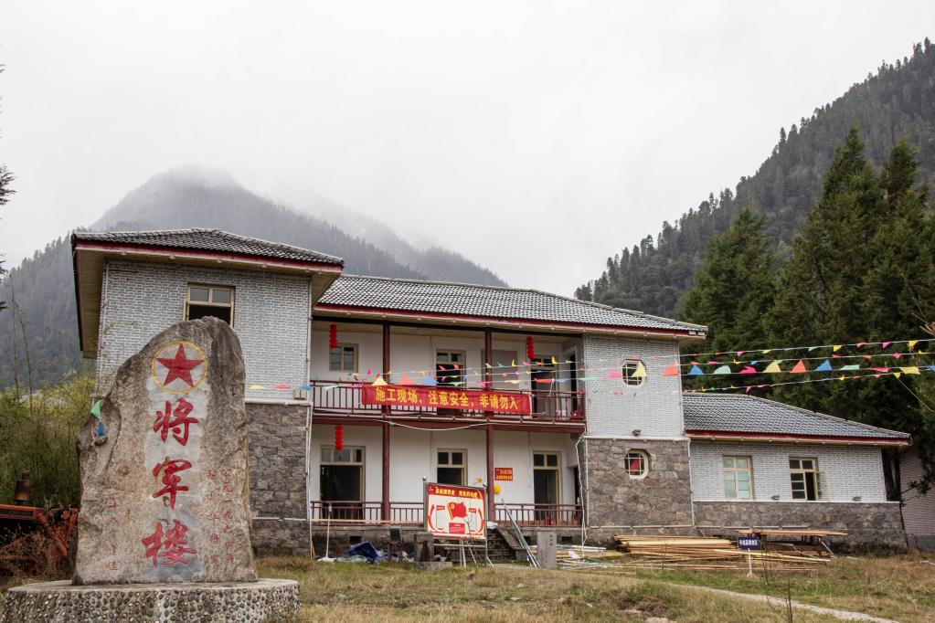 在易貢茶場,一座二層石木結(jié)構(gòu)的小樓前立著一塊石碑,上面用紅漆書寫著“將軍樓”3個大字。據(jù)介紹,這是當(dāng)年十八軍軍長張國華將軍在藏期間的辦公起居地之一?!安筷犃粝铝?0幢樓房和11幢平房,這是茶場最珍貴的紅色遺跡?!辈懦陶f。