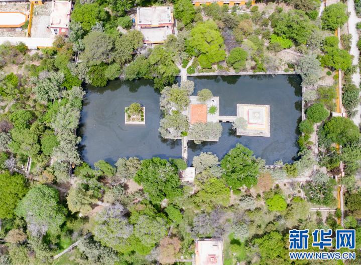 空中俯瞰羅布林卡一角(無人機(jī)圖片)。新華社記者 普布扎西 攝