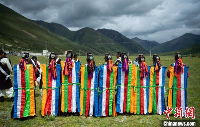 盛夏的西藏自治區(qū)拉薩市墨竹工卡縣門(mén)巴鄉(xiāng)仁多崗村草地上,28歲的尼瑪與身著盛裝的藏族牧民們跳著國(guó)家級(jí)非物質(zhì)文化遺產(chǎn)直孔普堆巴宣舞,迎接遠(yuǎn)道而來(lái)的游客,動(dòng)作優(yōu)美的歌舞吸引了大家駐足觀賞,并用手機(jī)或相機(jī)記錄。