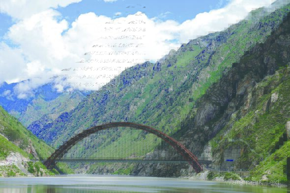 藏木雅魯藏布江雙線特大橋全長525.1米,主拱跨徑430米(2021年7月11日攝)。新華社記者 劉洪明 攝