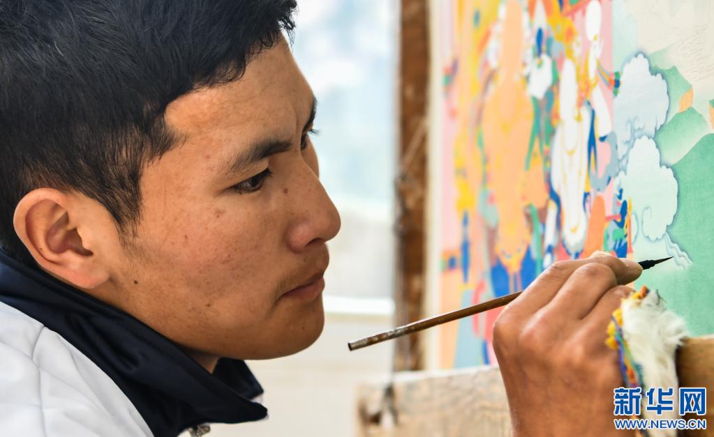 在西藏昌都市卡若區(qū)嘎瑪鄉(xiāng)民族手工藝培訓基地,學員正在學習唐卡繪畫。(2019年10月3日攝)新華社記者 晉美多吉 攝