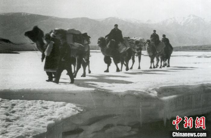 資料圖為1953年11月,西藏運(yùn)輸總隊(duì)駝工往西藏徒步運(yùn)輸物資。 中新社發(fā) 莫河駱駝場(chǎng)歷史陳列館 供圖