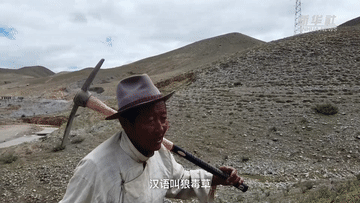 今天,和他一起,上山采挖制作藏紙的原材料。