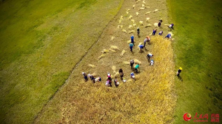 村民在田間收獲青稞。人民網(wǎng) 次仁羅布攝
