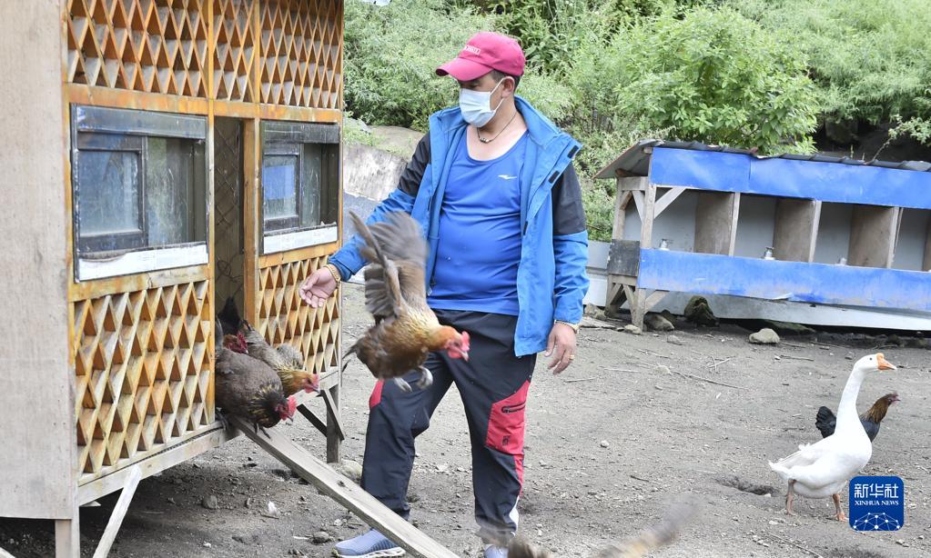 9月15日,西藏定結(jié)縣陳塘鎮(zhèn)養(yǎng)雞場負責人拉巴塔杰在放養(yǎng)藏雞。新華社發(fā)(索朗羅布 攝)