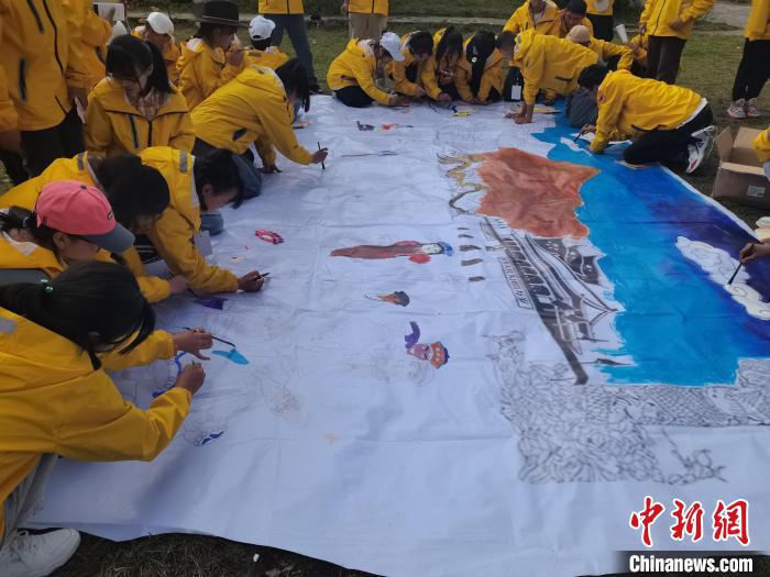 圖為學生們共繪一幅“中華民族一家親”。 西藏青少年實踐教育基地供圖