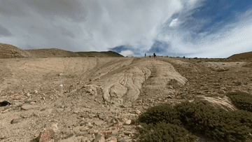 在喜馬拉雅山脈東部一個(gè)山腳下,滿臉胡須、面部黝黑、嘴唇皸裂的科考隊(duì)員王昊,指著垂直地面高達(dá)百米的沉積剖面說,從這些大型傾斜層理可以看出,數(shù)萬年前,西藏日喀則市定結(jié)縣區(qū)域內(nèi)存在一個(gè)巨大的堰塞湖。
