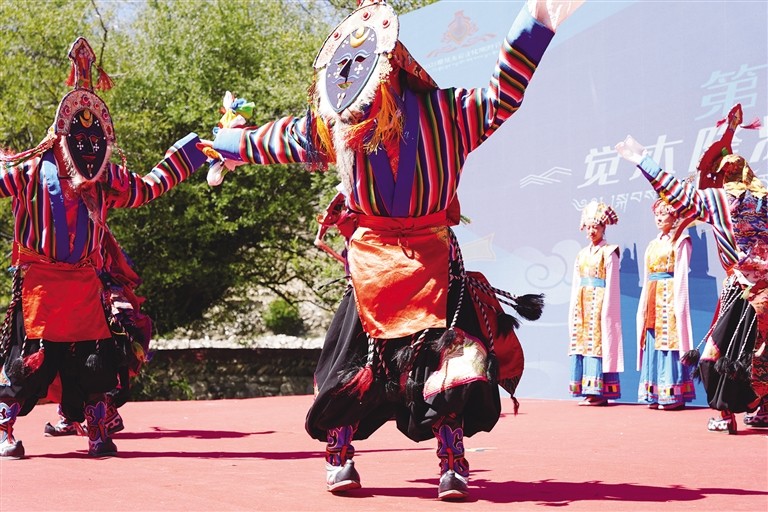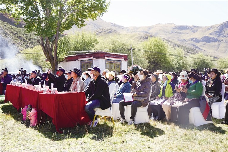 啟動儀式結(jié)束后,還舉辦了第六屆覺木隆派藏戲文化旅游節(jié),邀請堆龍德慶區(qū)10支覺木隆藏戲表演隊表演特色劇目并為他們授牌。堆龍德慶區(qū)委常委、宣傳部部長楊麗表示,本屆藏戲文化旅游節(jié),廣發(fā)“藏戲達人召集令”,邀請各派系、各唱腔達人表演特色劇目選段、共話藏戲,就是希望通過共建文化陣地、共享文化資源、共辦文化活動的形式,凝聚合力,充分彰顯藏戲文化魅力,弘揚優(yōu)秀傳統(tǒng)民族文化,保護和傳承藏戲文化遺產(chǎn),推動藏戲文化深度發(fā)展?!昂軜s幸能參加此次活動,那嘎藏戲團于1978年成立,那年我13歲,藏戲團剛成立我就加入了,因為我十分喜歡藏戲,希望自己能將這種傳統(tǒng)藝術(shù)傳承下去?!苯衲?6歲的安多說。