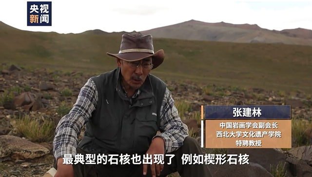 中國(guó)巖畫(huà)學(xué)會(huì)副會(huì)長(zhǎng)、西北大學(xué)文化遺產(chǎn)學(xué)院特聘教授 張建林:最典型的石核也出現(xiàn)了,例如楔形石核。年代不好判斷,我們對(duì)現(xiàn)在藏北地區(qū)的細(xì)石器,現(xiàn)在還沒(méi)有這個(gè)年代上的框架,我們只是分布區(qū)域上,細(xì)石器地點(diǎn)發(fā)現(xiàn)得非常多,從那曲一直到阿里。