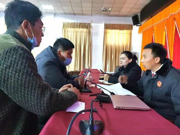 為外出務工人員“一對一”答疑法律知識。圖片由拉孜縣宣傳部提供