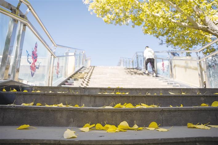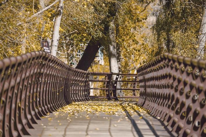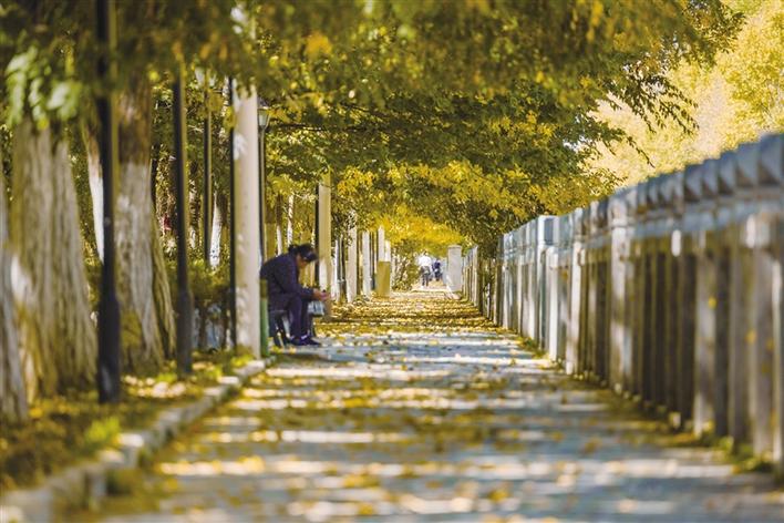 陽光溫暖地包裹著大地,穿過草木,穿過人群,在地上折射出好看的光影。樹木一排排整齊站立著,樹葉時不時隨風飄落,落在地面,鋪作一地金色的地毯,行人走過,發(fā)出“沙沙”的聲響,伴著人們的說笑聲,格外動聽美妙。